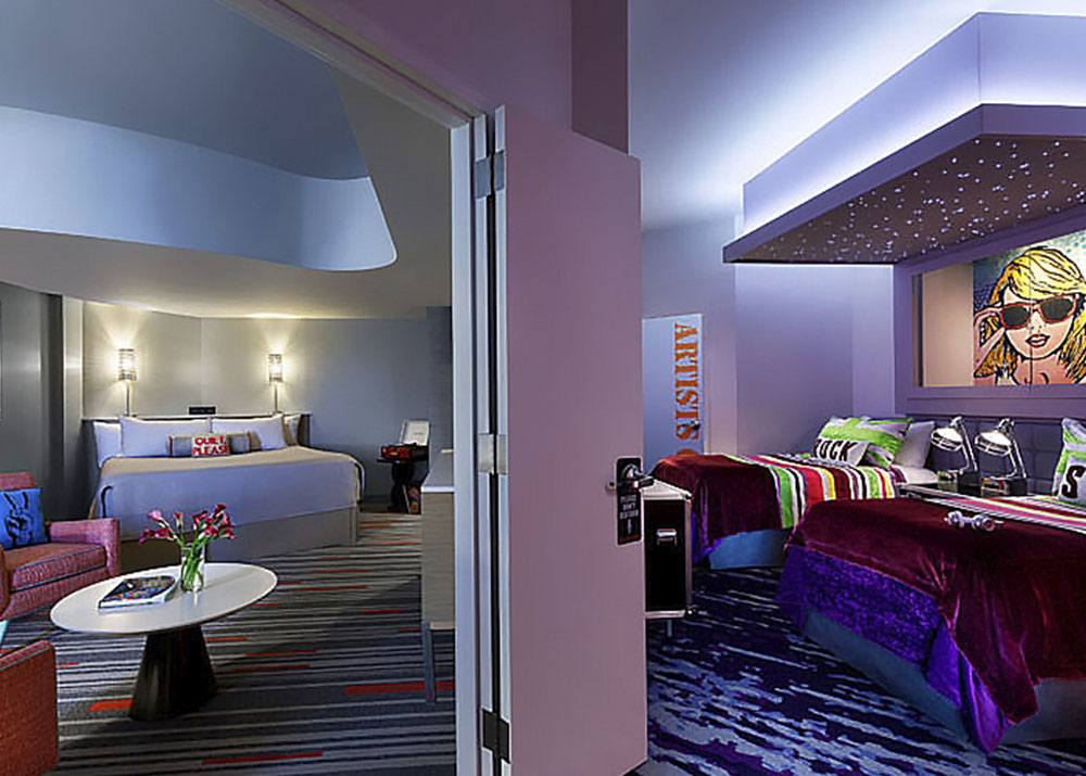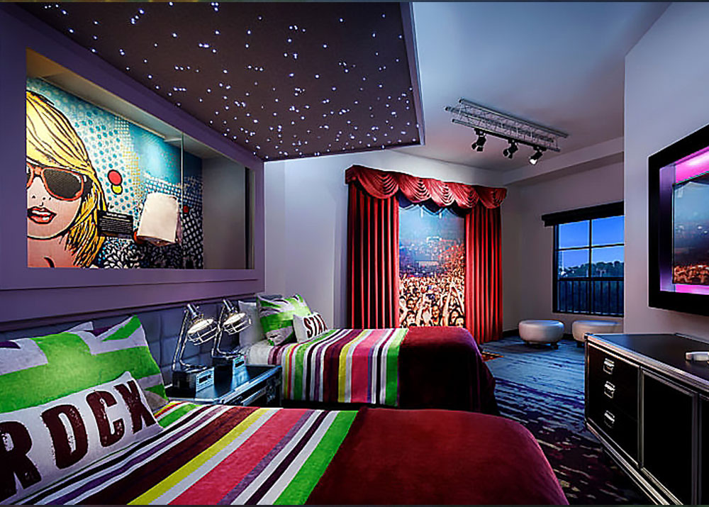 Epic Sky works with high end themed hotels and their designers assisting in creating special effects to make their rooms unique. This particular room has a star ceiling with cove lighting over the beds creating a intrique and drama.