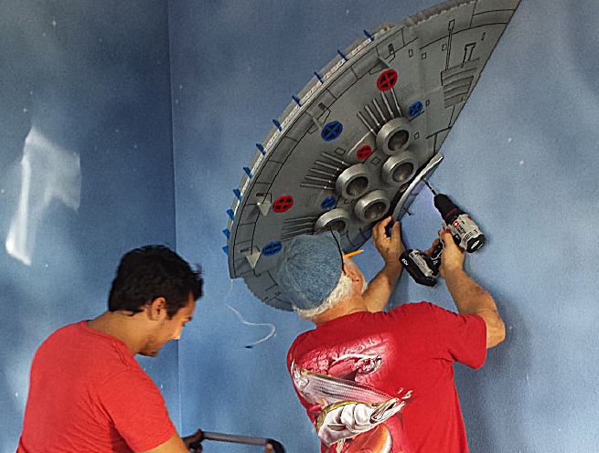 Impact Lighting's Epic Sky division doesn't stop at stars, it reaches far beyond with talented designers and artists to create a wall busting intrusion for a custom space themed childrens room. From faux painting to extruded art and fiber optic lighting this one is a show stopper!!!