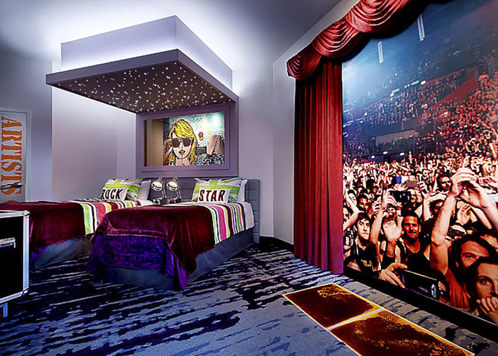 Epic Sky works with high end themed hotels and their designers assisting in creating special effects to make their rooms unique. This particular room has a star ceiling with cove lighting over the beds creating a intrique and drama.